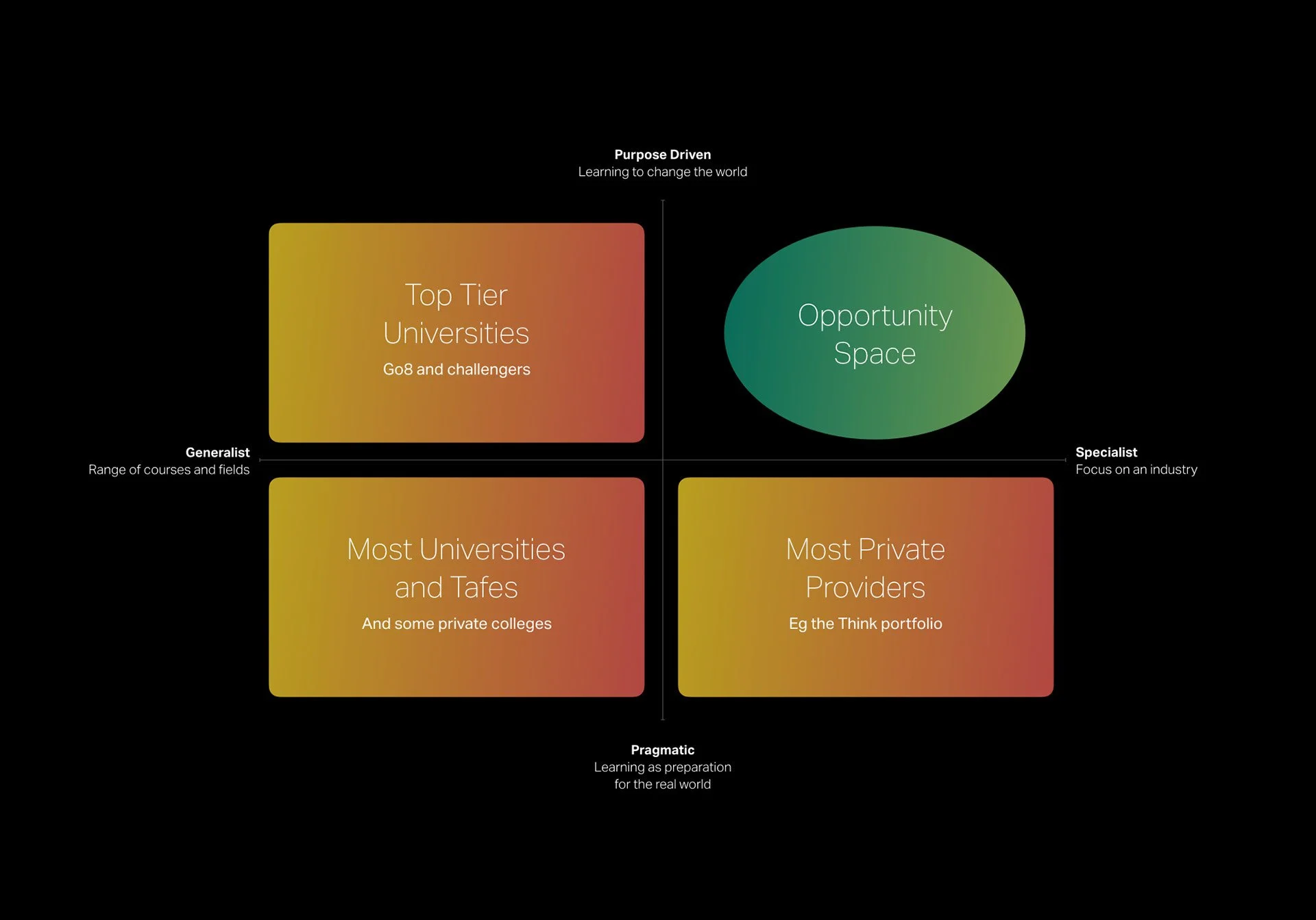 This project was particularly rewarding because brand thinking led to real business transformation. At it's core, the project was about revitalising the brand to drive student acquisition - brand was seen as a way to turn around a struggling business.