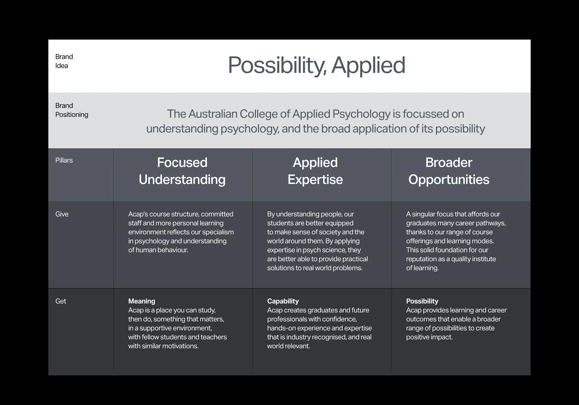 Working with Navitas Group, an ASX 'Top 100' education provider, I led the relationship and project to develop a new strategy for one of their larger businesses, The Australian College of Applied Psychology.